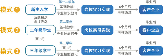 1、校企合作、专业共建、工学交替、定向培养